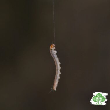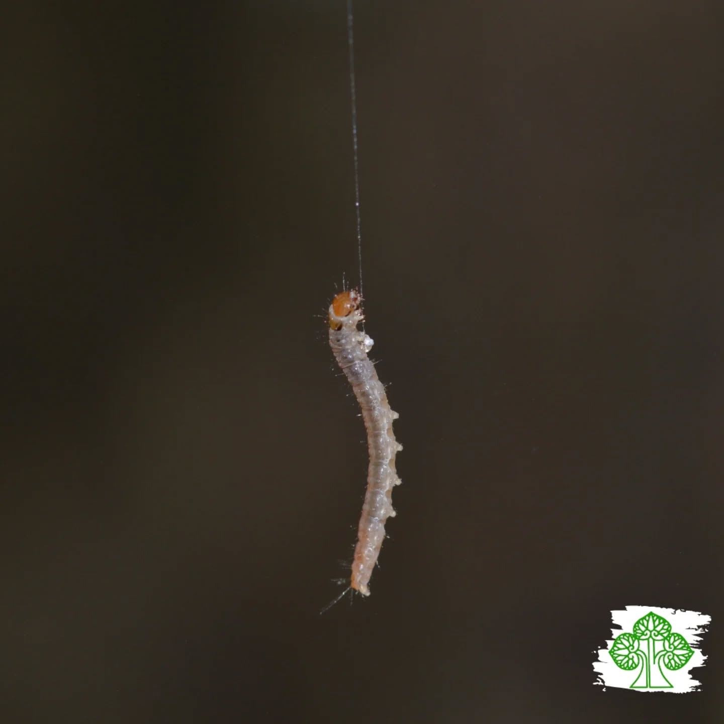 7. Simpatico bruco di lepidottero appeso alla sua seta