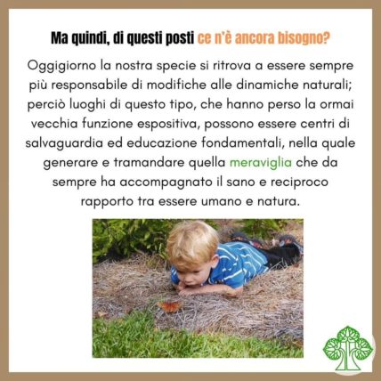 Arricchimenti ambientali, centri di recupero, scambi tra enti e centri educativi sono alla base delle realtà contemporanee, che rinascono come luoghi in cui trasmettere l’educazione e il rispetto per la natura che ci circonda.