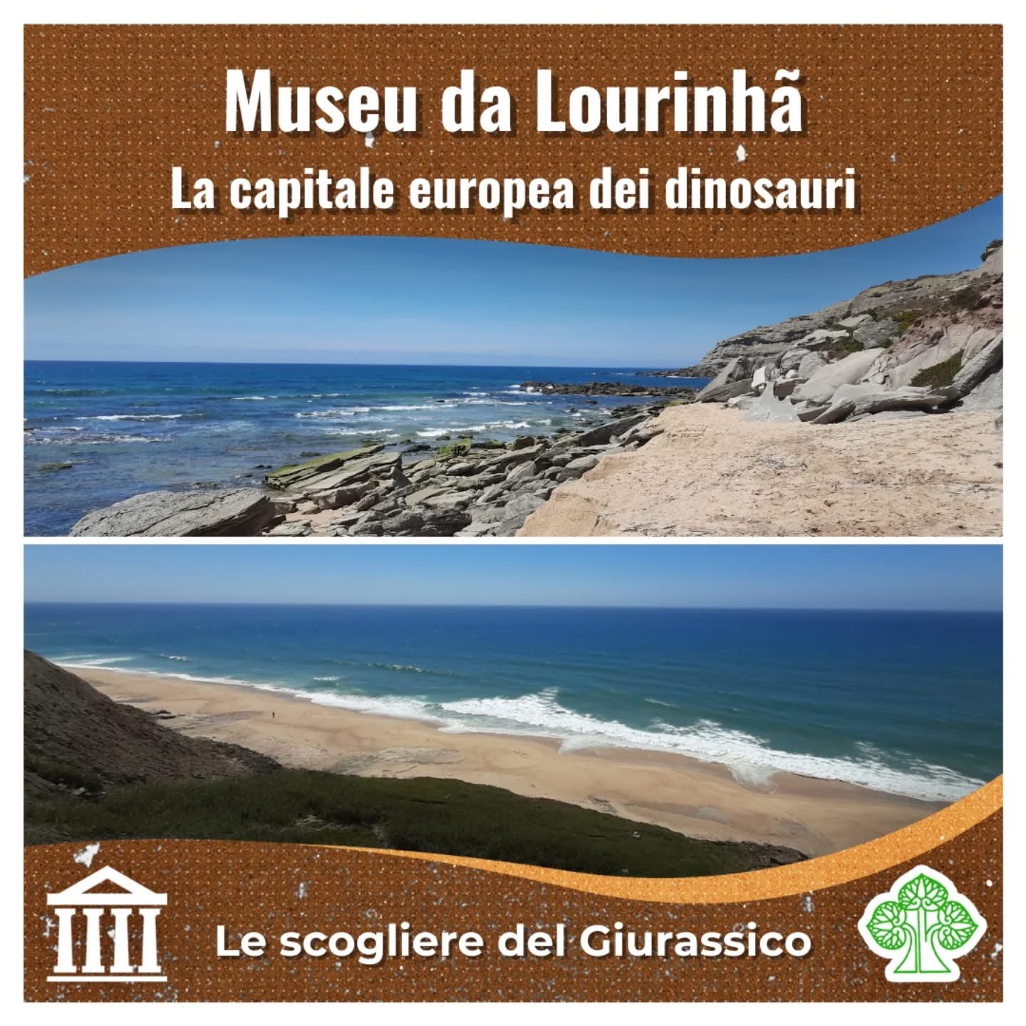 Per chiunque si trovi in Portogallo e nutra un interesse per la storia naturale, una visita al Museu da Lourinhã (GEAL) è assolutamente imperdibile. La pittoresca cittadina di Lourinhã, situata poco a nord di Lisbona, è conosciuta come la “Capitale europea dei dinosauri” grazie ai numerosi siti fossiliferi che punteggiano i suoi dintorni. Questi affiorano soprattutto lungo le spettacolari scogliere atlantiche, dove gli strati rocciosi risalgono per lo più al Giurassico Superiore (slide 2).