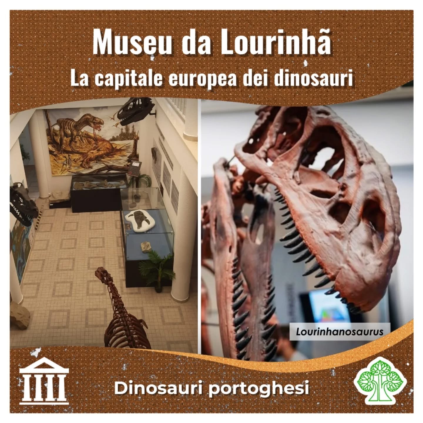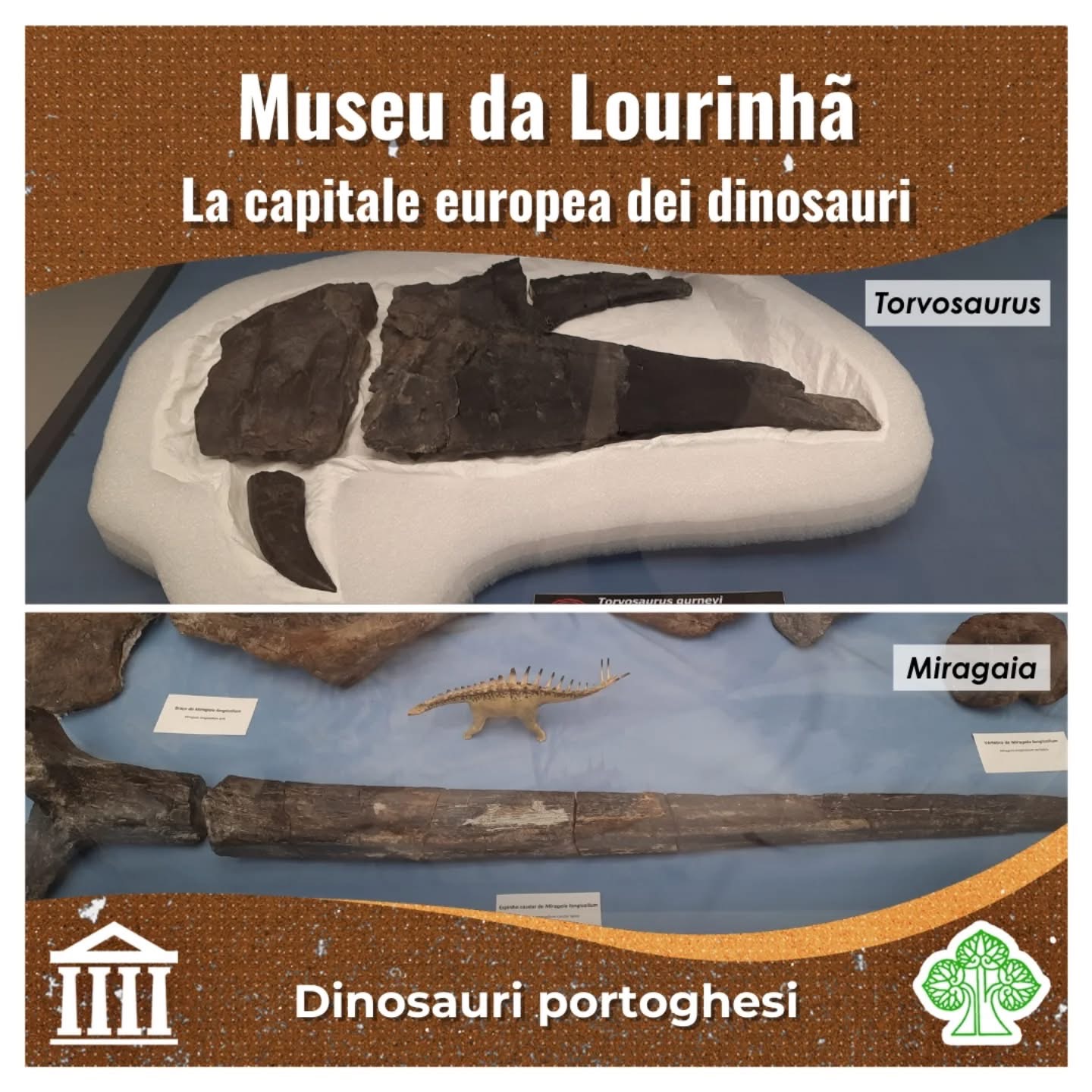 Il centro abitato stesso riflette questo soprannome: statue e decorazioni ispirate ai dinosauri arricchiscono strade e parchi, creando un’atmosfera unica. Lourinhã è un vero paradiso per gli appassionati di paleontologia: nei suoi dintorni sono stati scoperti alcuni dei più straordinari fossili di dinosauri europei del Giurassico superiore, molti dei quali esposti proprio nel museo (slide 4–6), insieme ad altri reperti provenienti dal Portogallo (come slide 7)