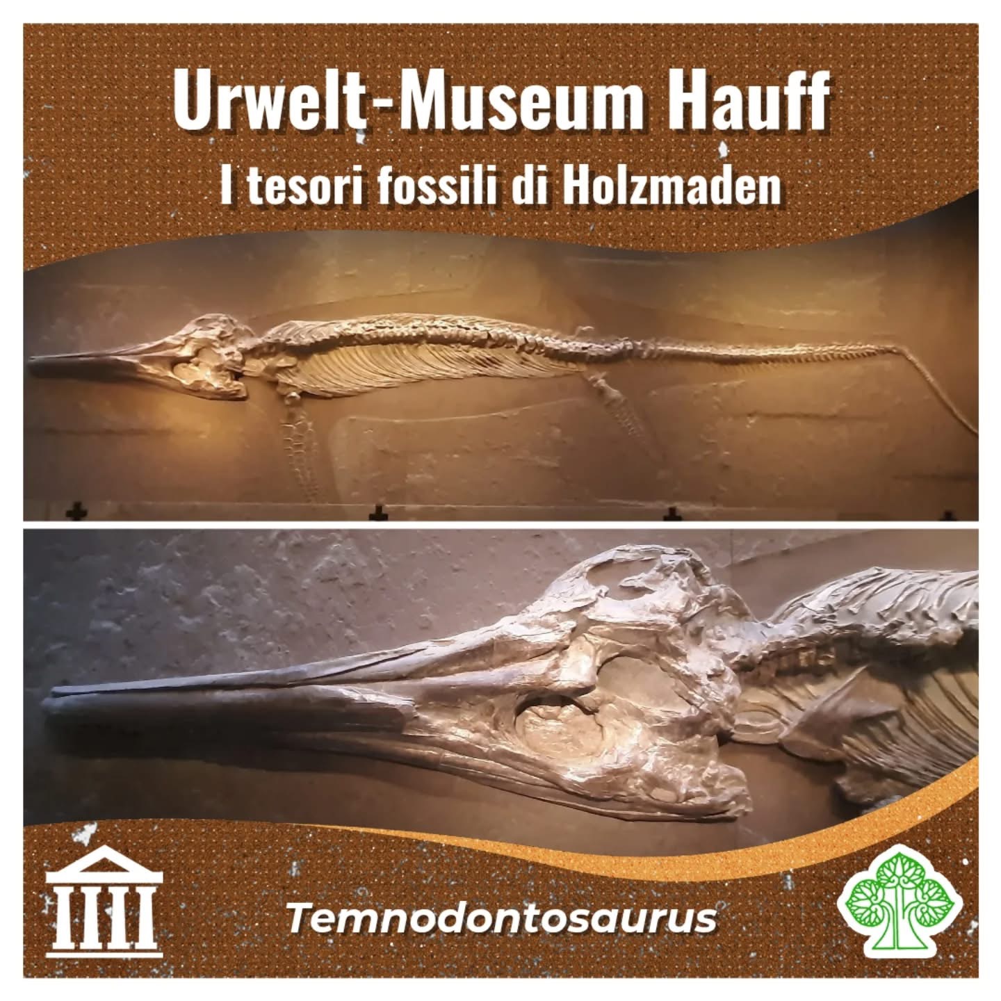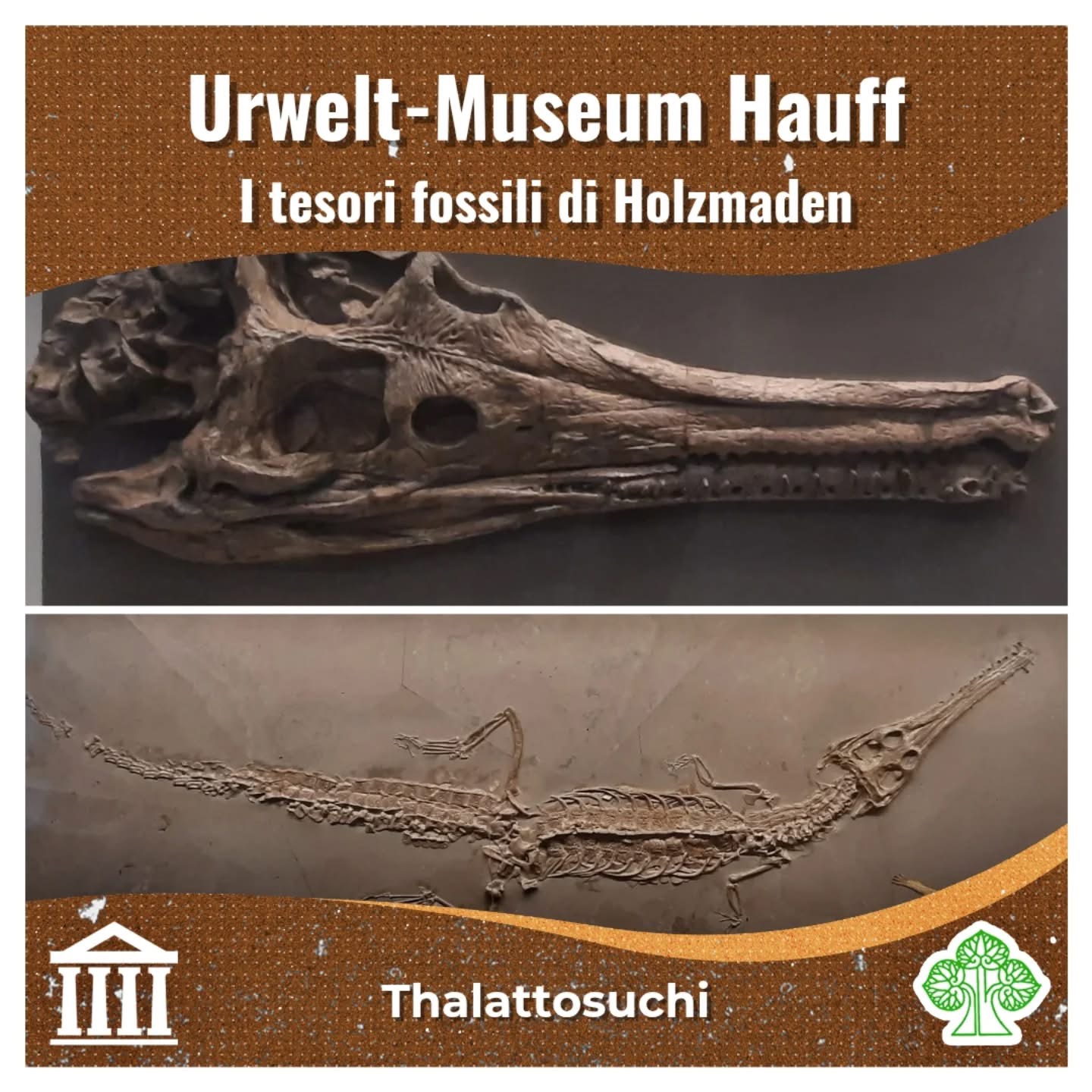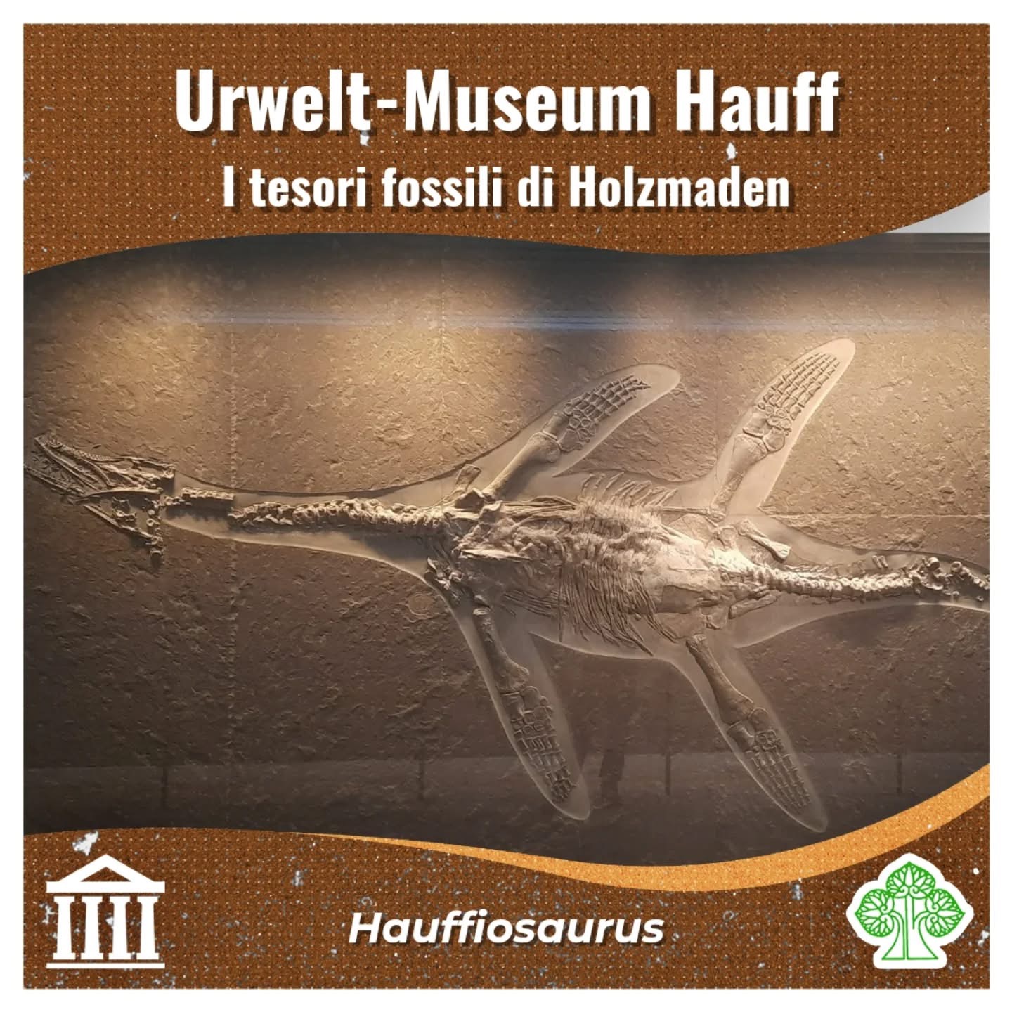 Un autentico tesoro nascosto nella campagna sveva è la collezione di fossili dell’Urwelt-Museum Hauff. Questo museo si trova nel piccolo comune di Holzmaden (Baden-Württemberg, Germania), divenuto celebre tra paleontologi e collezionisti grazie agli affioramenti degli scisti a Posidonia (slides 2, 3): rocce che hanno restituito un’incredibile quantità di fossili, spesso conservati in modo eccezionale, persino con resti di tessuti molli. Alcuni degli esemplari più spettacolari sono oggi esposti proprio all’Urwelt-Museum, fondato nel 1936 a partire dalle collezioni private di Bernhard Hauff (slide 4).