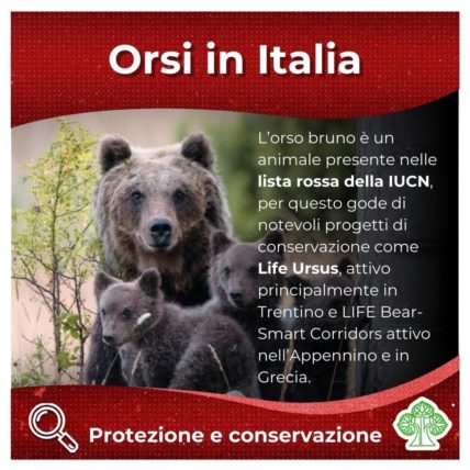 Entrambe le specie sono a rischio e inserite nella Lista Rossa IUCN, con vari progetti di tutela in corso. Il programma LIFE Ursus opera nelle Alpi, mentre LIFE Bear-Smart Corridors è attivo nell’Appennino e in Grecia. Diverse associazioni, come WWF e Salviamo l’Orso, promuovono la convivenza con gli orsi e la loro protezione.