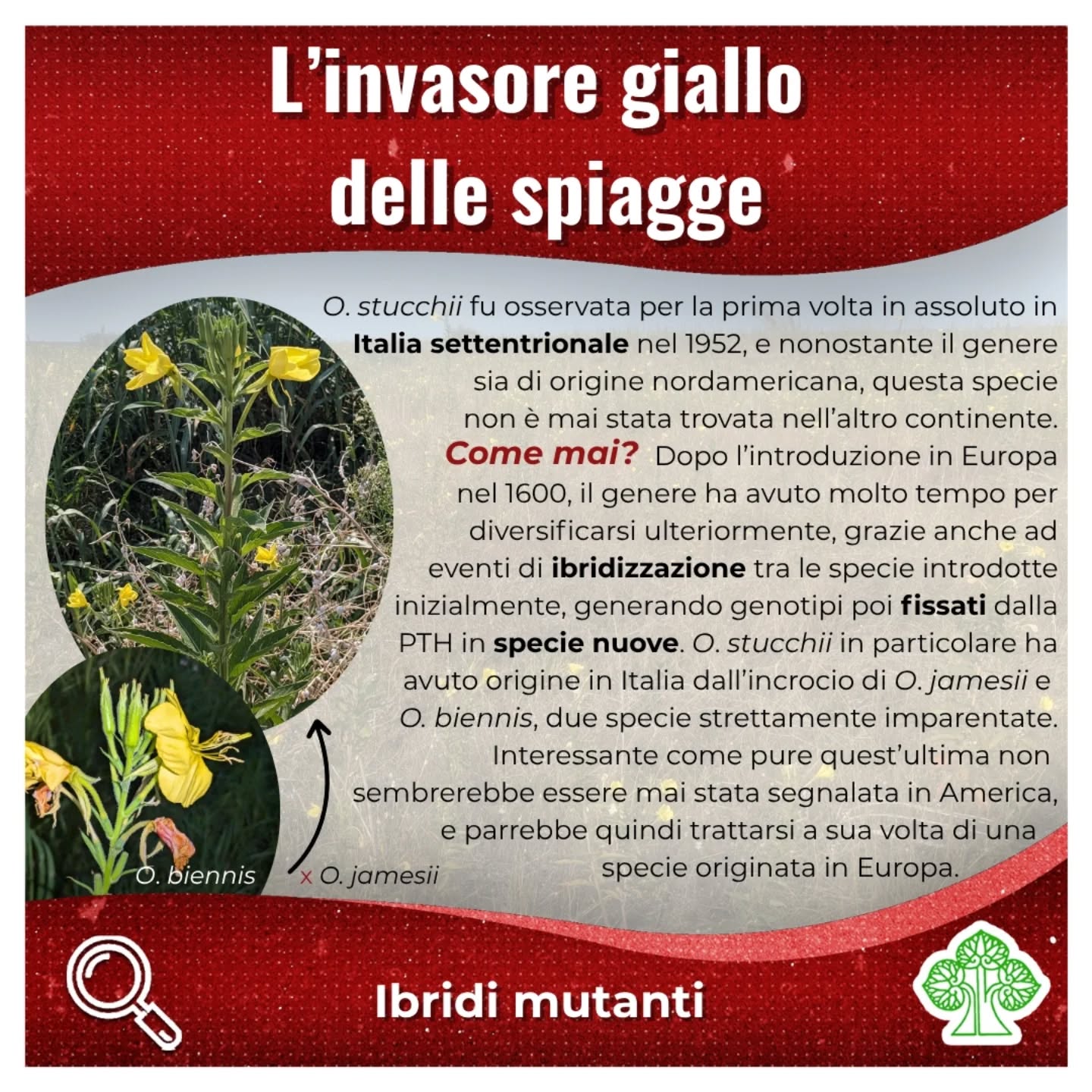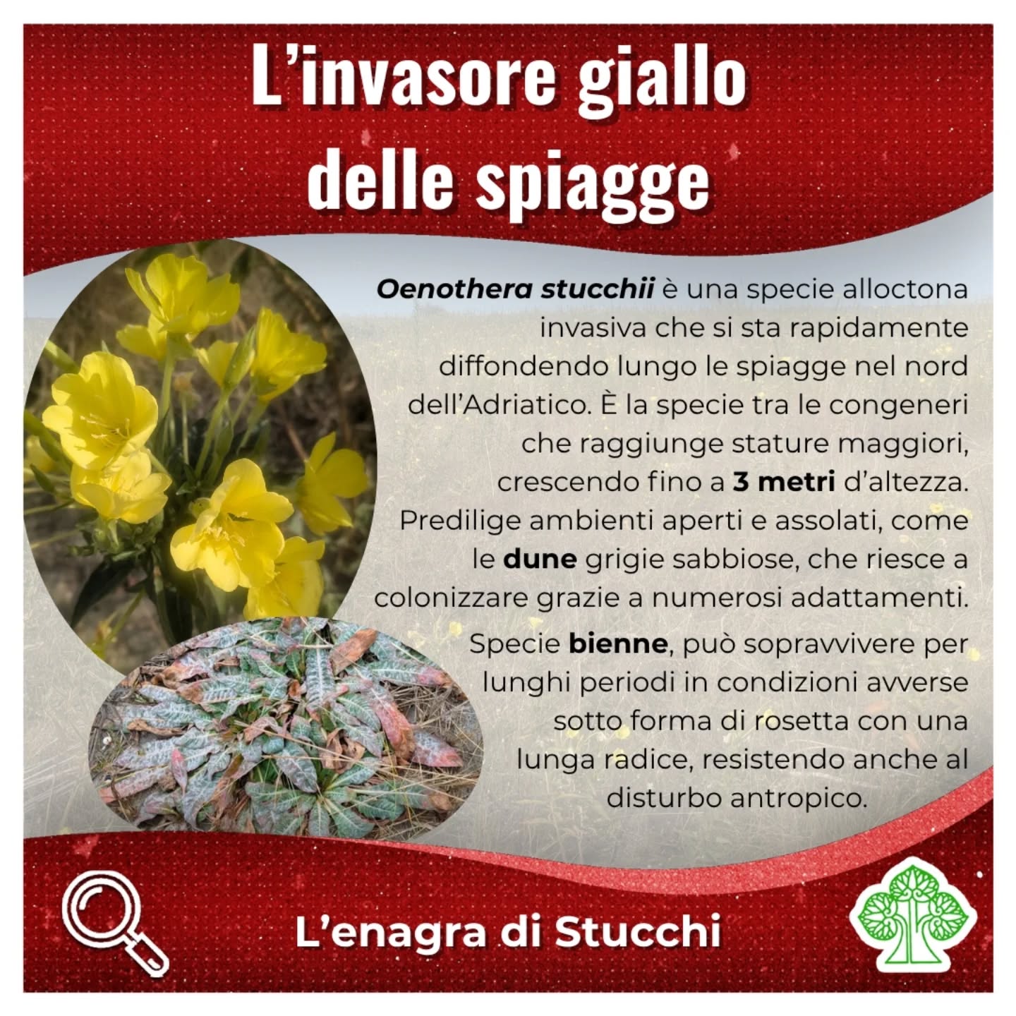 Se a fine estate avete fatto un giro tra le poche dune rimaste in riviera adriatica, avrete di sicuro notato questa vistosa pianta dai grandi fiori gialli. Si tratta dell’Enagra di Stucchi ( ), una presenza ormai quasi ubiquitaria nelle zone costiere sabbiose del Nord Italia. Ma che origini ha questa misteriosa alloctona invasiva? Potrebbero essere molto più vicine di quanto ci si aspetti.